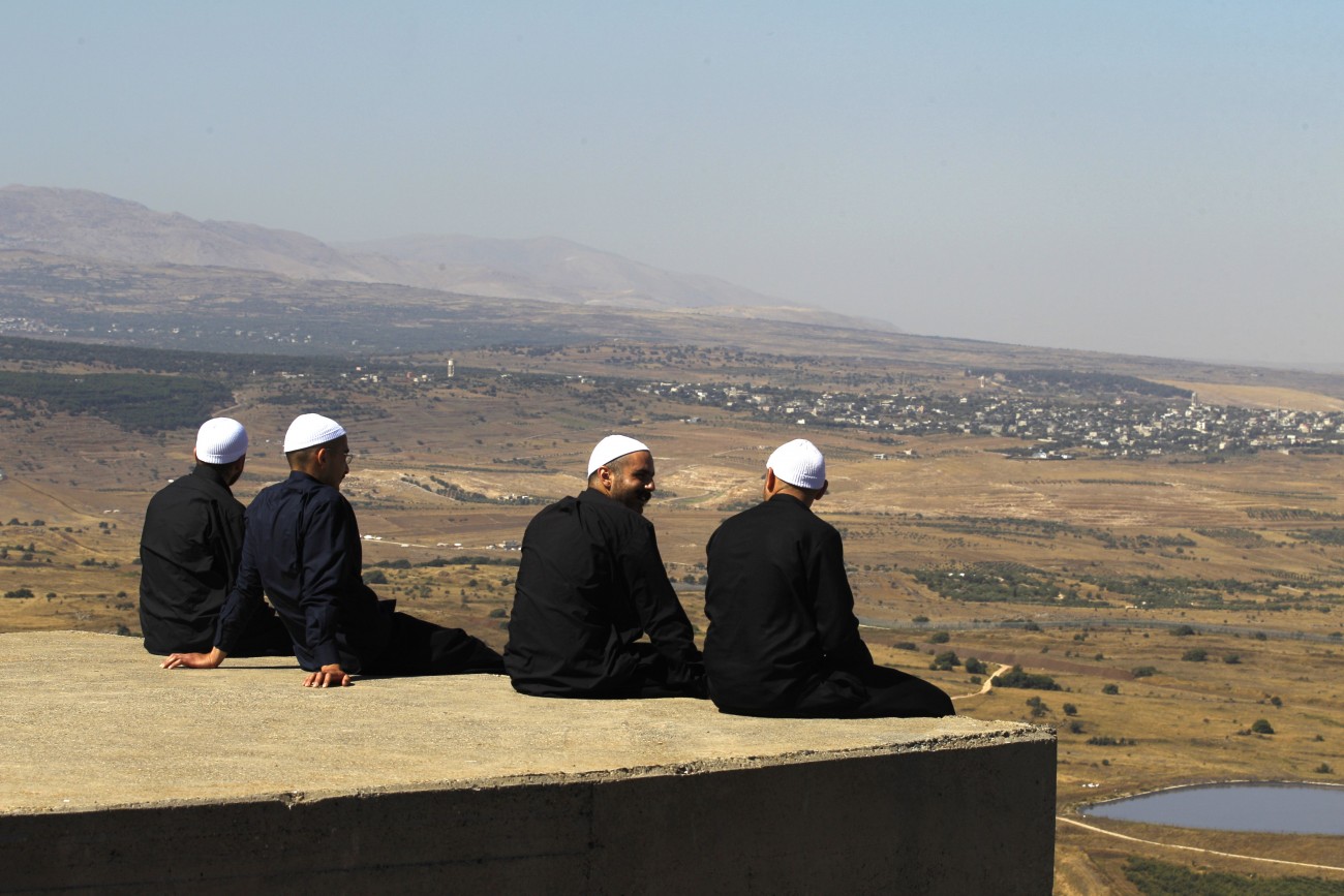 - Druze men in the Israeli-annexed Golan Heights look out across the southwestern Syrian province of Quneitra, visible across the border on July 7, 2018 (Photo by JALAA MAREY/AFP/Getty Images)