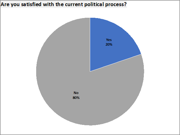 • Political Process: 80% of Syrians are dissatisfied with the current political process.