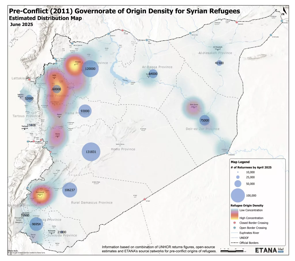 Returns are largely self-organized and voluntary, driven by a mix of push factors abroad (economic hardship, xenophobia) and the pull of Assad’s departure. However, the regime’s fall alone is not enough: many refugees still see Syria as unsafe and are unconvinced by the current political process. The study also documents new waves of displacement following sectarian violence in coastal areas in March 2025, particularly among Alawi communities.
