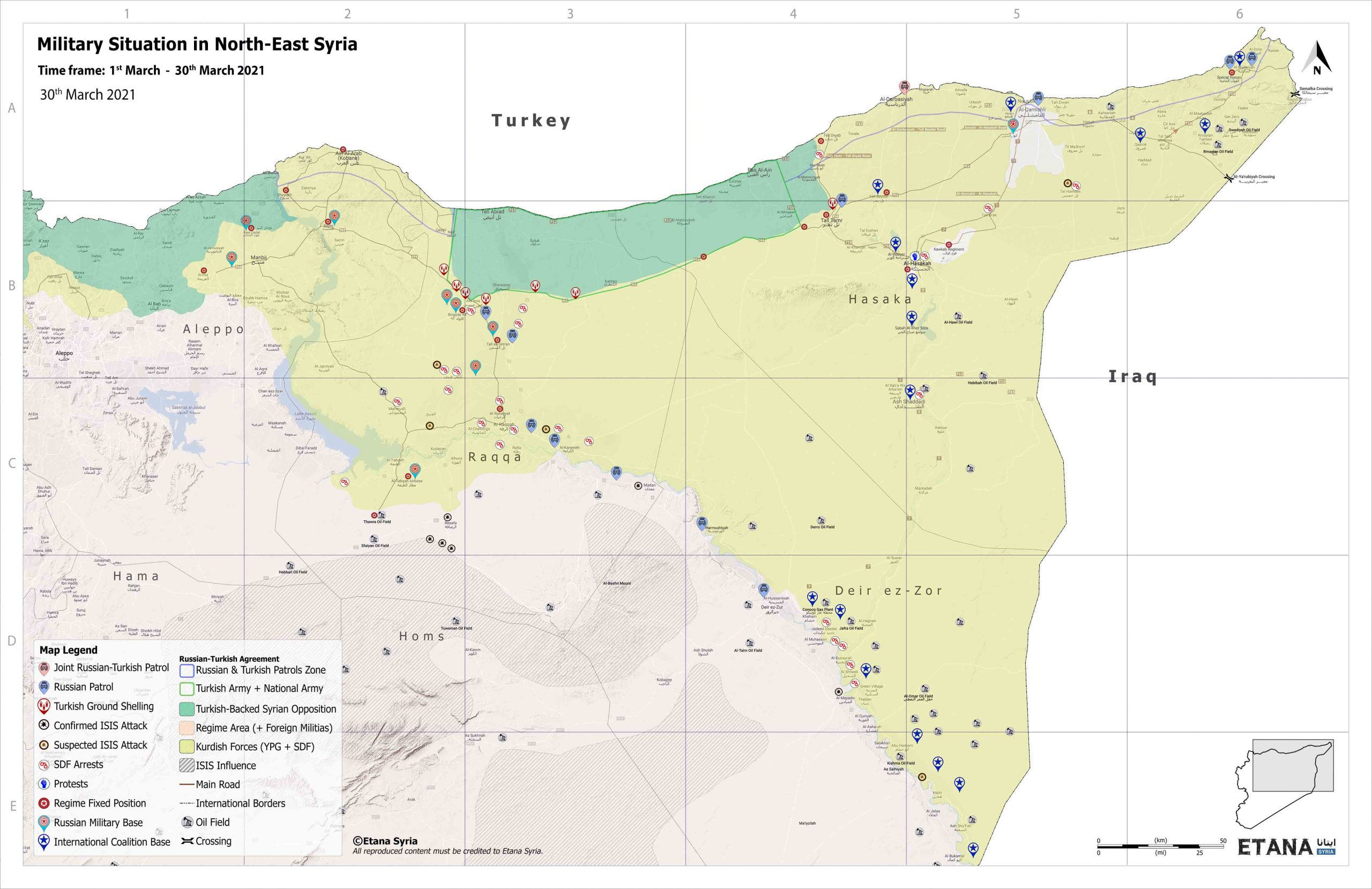 Attached Map: Military Situation in North-East Syria – 30th March 2021
