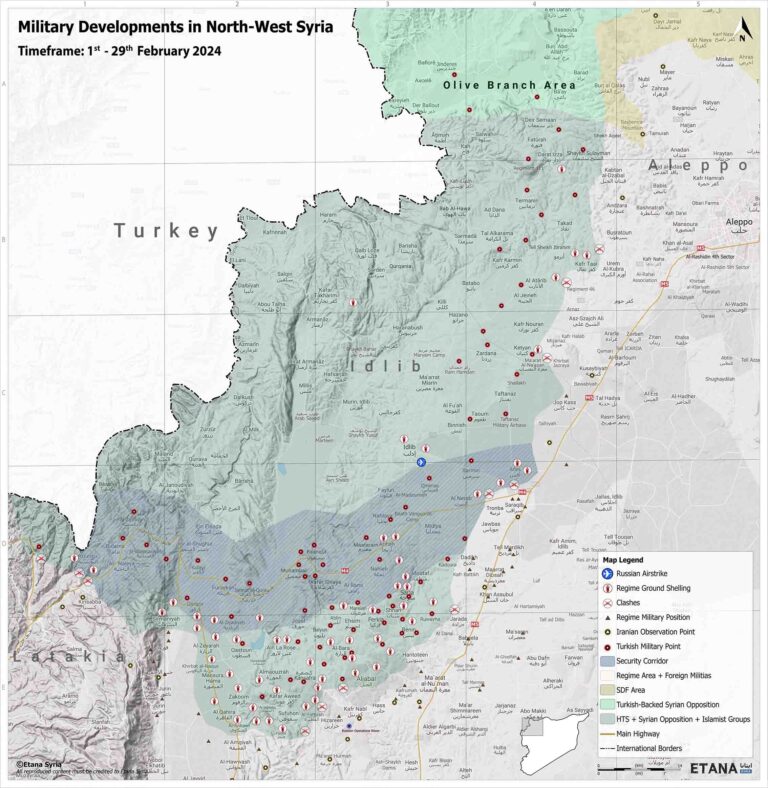 Regime forces and affiliated militias regularly targeted villages across the north-west, striking a range of civilian infrastructure in southern Idlib, western Hama and eastern Aleppo last month. At least five civilians were killed, and several others wounded, in these attacks, most of them women and children.