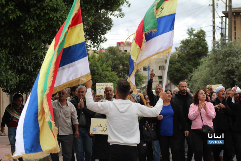 In defiance of the regime, around 2,500 people turned out for anti-regime protests in Suwayda the Friday following massive regime military redeployments. The protests, ongoing for nine months, continued into the next week. (Photo: ETANA)