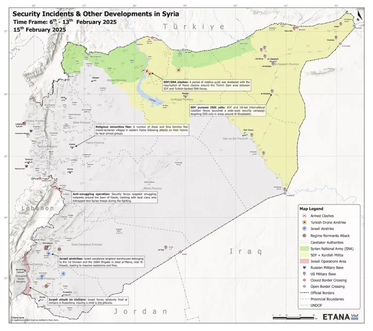 Intense clashes between the SNA and Syrian Democratic Forces (SDF) re-erupted around the Tishreen Dam and Qara Qozak Bridge, accompanied by heavy artillery shelling from Turkish forces. Turkish artillery also targeted areas near Raqqa’s Ain Issa and Safawiyeh. The SDF retaliated by shelling the outskirts of Suluk.